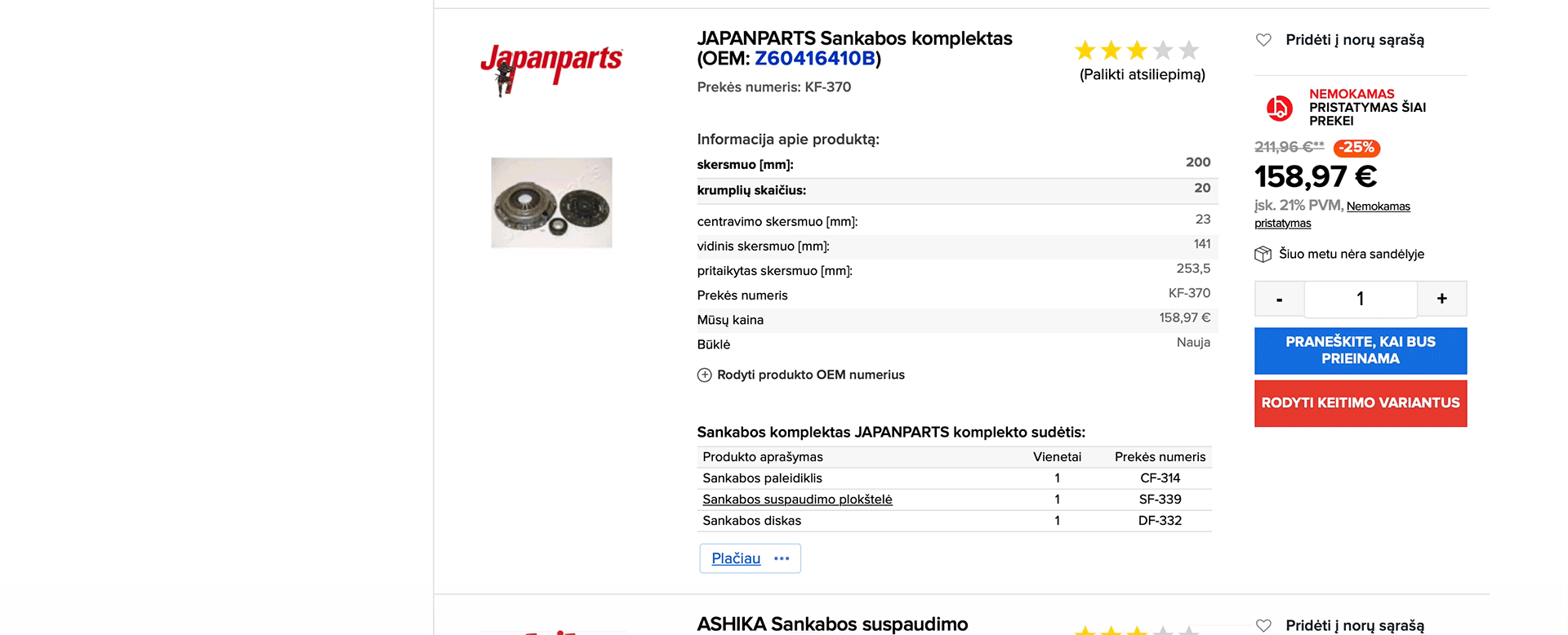 Keitimo variantų sąrašas yra rodomas, jeigu ieškote dalių pagal OEM numerį. Keitimo variantas yra produktas su panašiomis ar identiškomis charakteristikomis. Įvedę OEM numerį, būtinai sulyginkite sąraše rodomų keitimo variantų charakteristikas. Jeigu pasirinkimui pateikiami keli paieškos rezultatai, nuodugniai perskaitykite ir sulyginkite keitimo variantų produktų charakteristikas su originaliu produktu, arba susisiekite su klientų aptarnavimo tarnyba, kad jie jums padėtų. Jeigu jums reikiamos dalies nėra sandėlyje, pasinaudokite mygtuku "Rodyti keitimo variantus". Jūs pamatysite produktų sąrašą su panašiomis ar identiškomis charakteristikomis, tačiau iš kitų gamintojų ir, galimai, skirtingų kainų kategorijų.